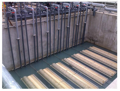 ?。?)調節池出水用提升泵提升到缺氧池,同時經過曝氣硝化過的污水回流進行反硝化脫氮。出水進入接觸氧化池,通過曝氣進行好氧生化處理同時進行硝化反應。